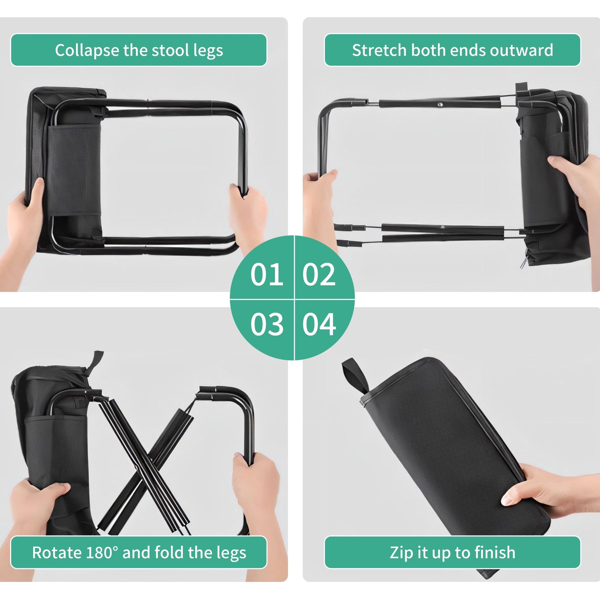 - QUICK SETUP WITH NO TOOLS NEEDED: Enjoy instant seating in seconds. These collapsible stools unfold quickly without assembly, making them ideal for trails, campsites, parks, or spontaneous rest stops.