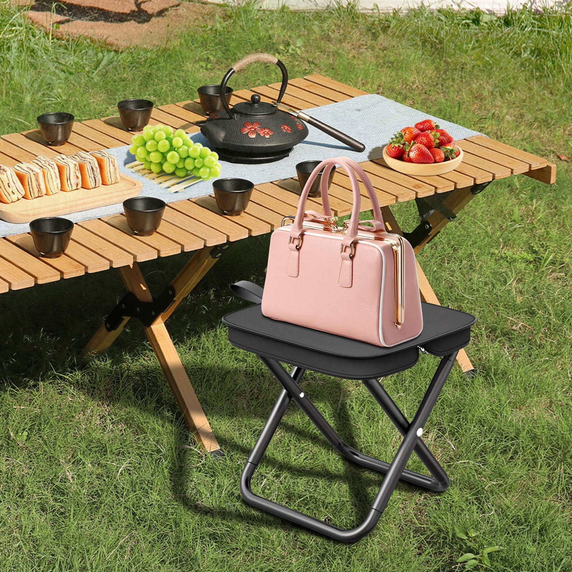 2 Pack Camping Stool, Portable Folding Stool with Carry Bag, 11 Inch Small Folding Stool for Adults, Collapsible Camp Stool Outdoor Footstool for Travel Walking Hiking Fishing Picnic BBQ - Black