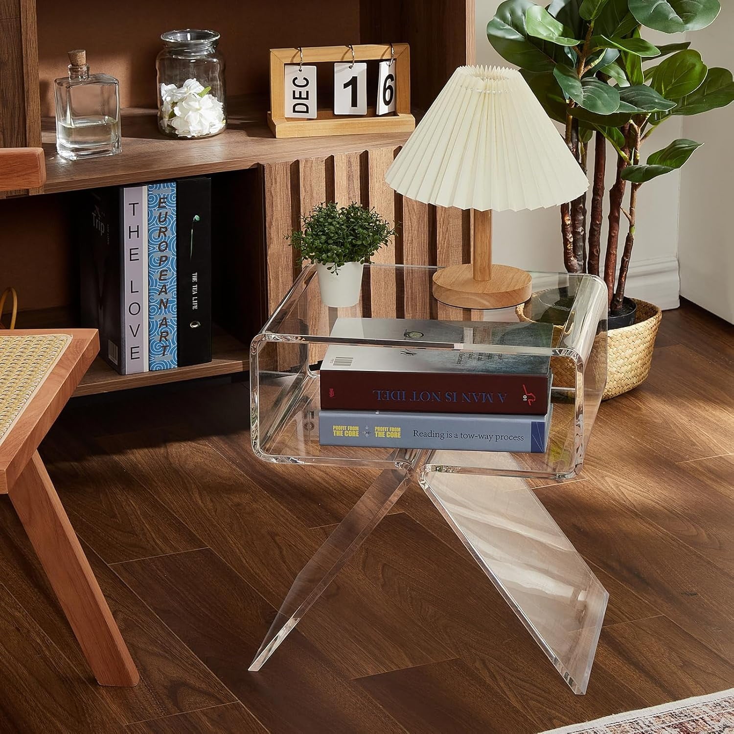 2025 New Update Acrylic Nightstand,17.7" L x 11.8" W x 15.4" H Acrylic Desk, Acrylic Side Table, Modern Design Clear Table, Home Decor Display End Table for Living Room