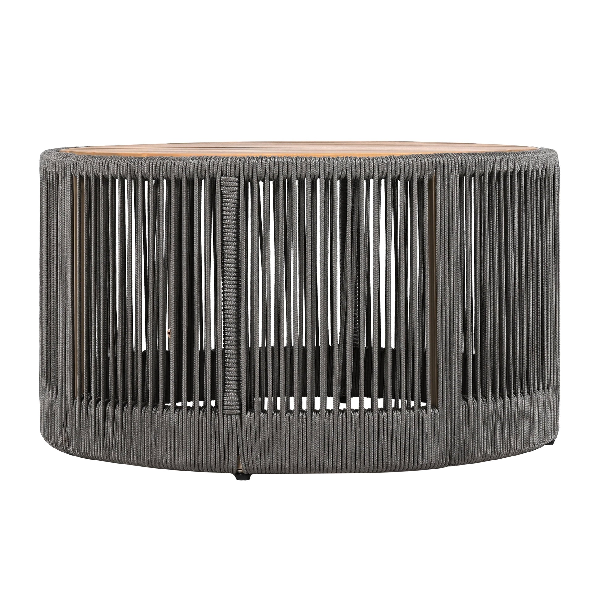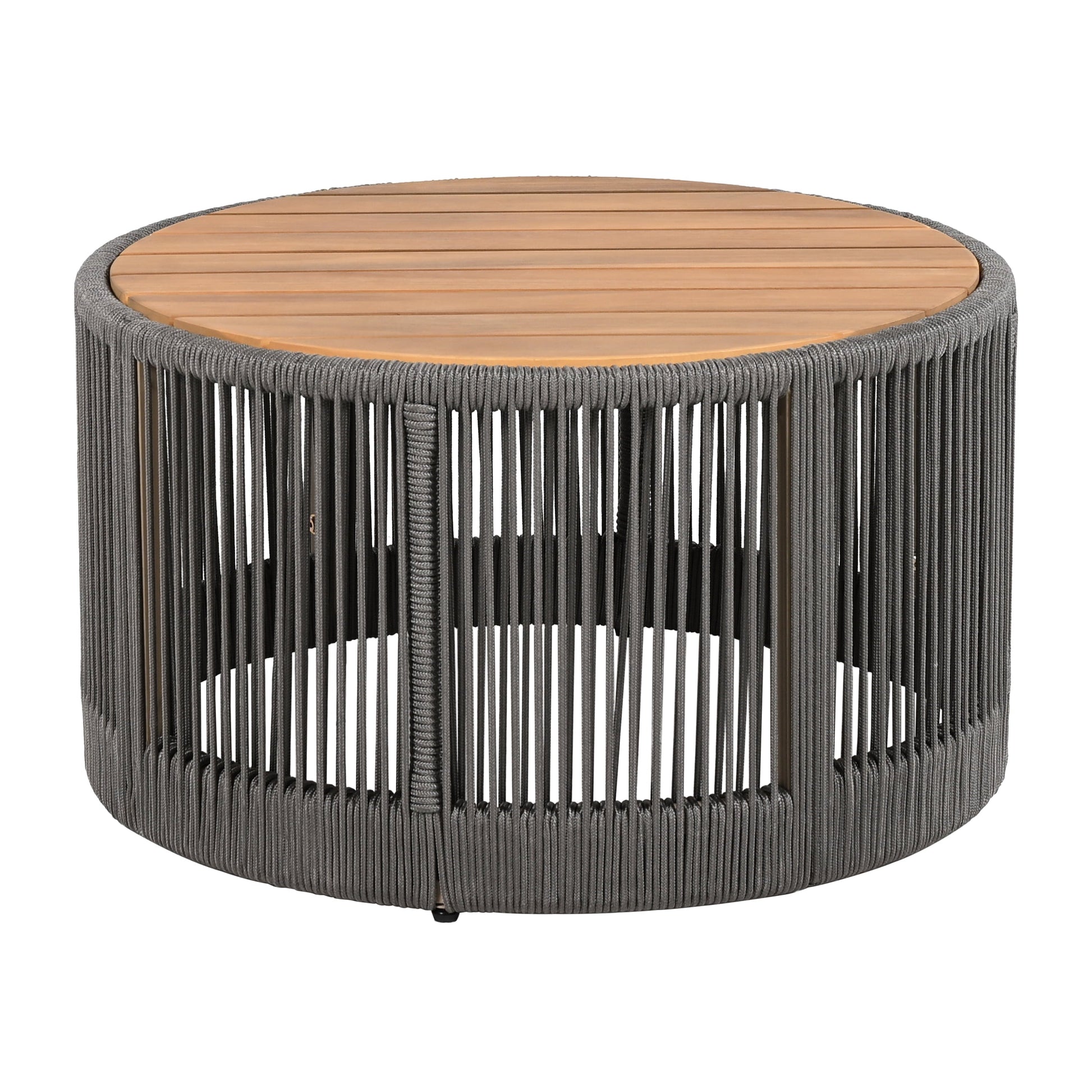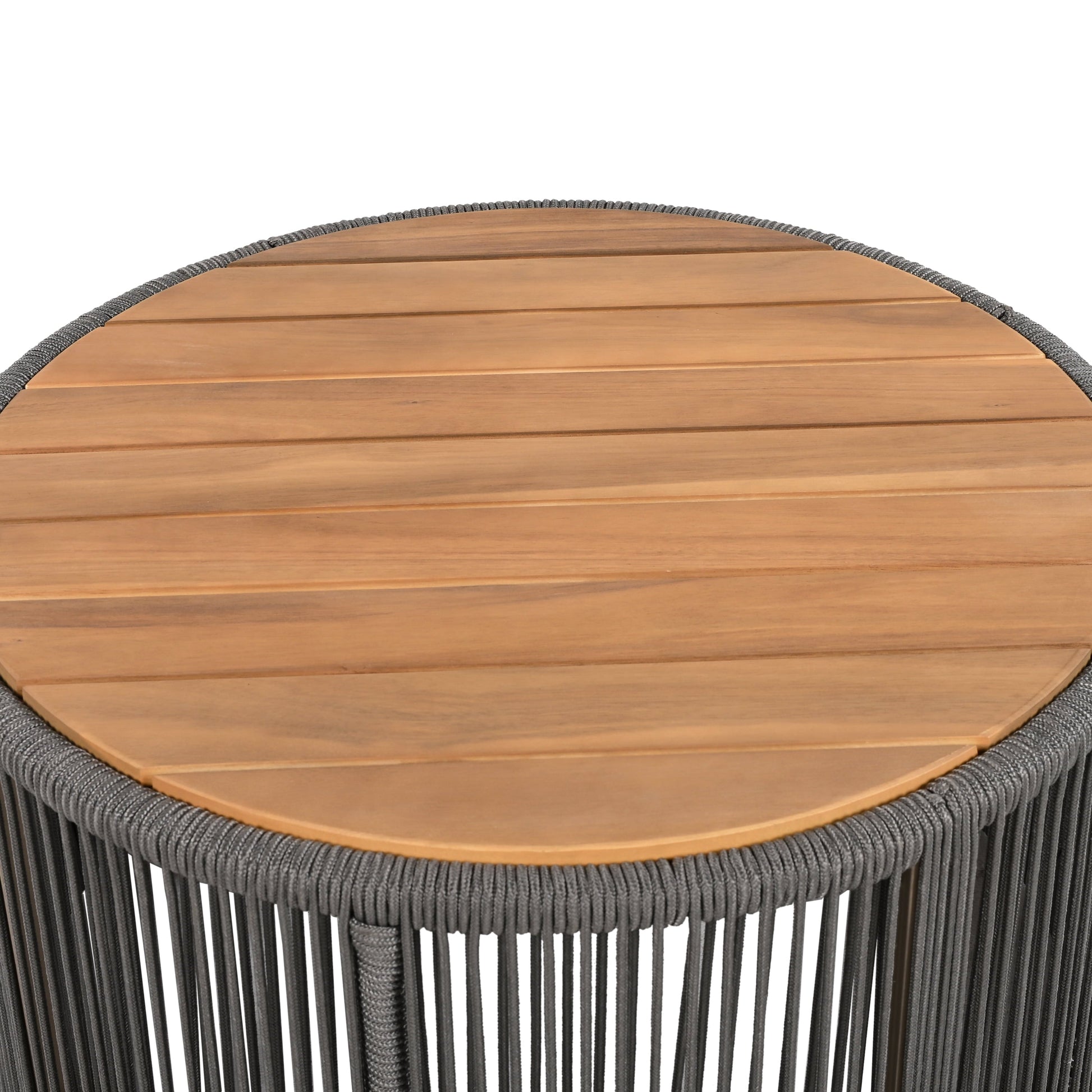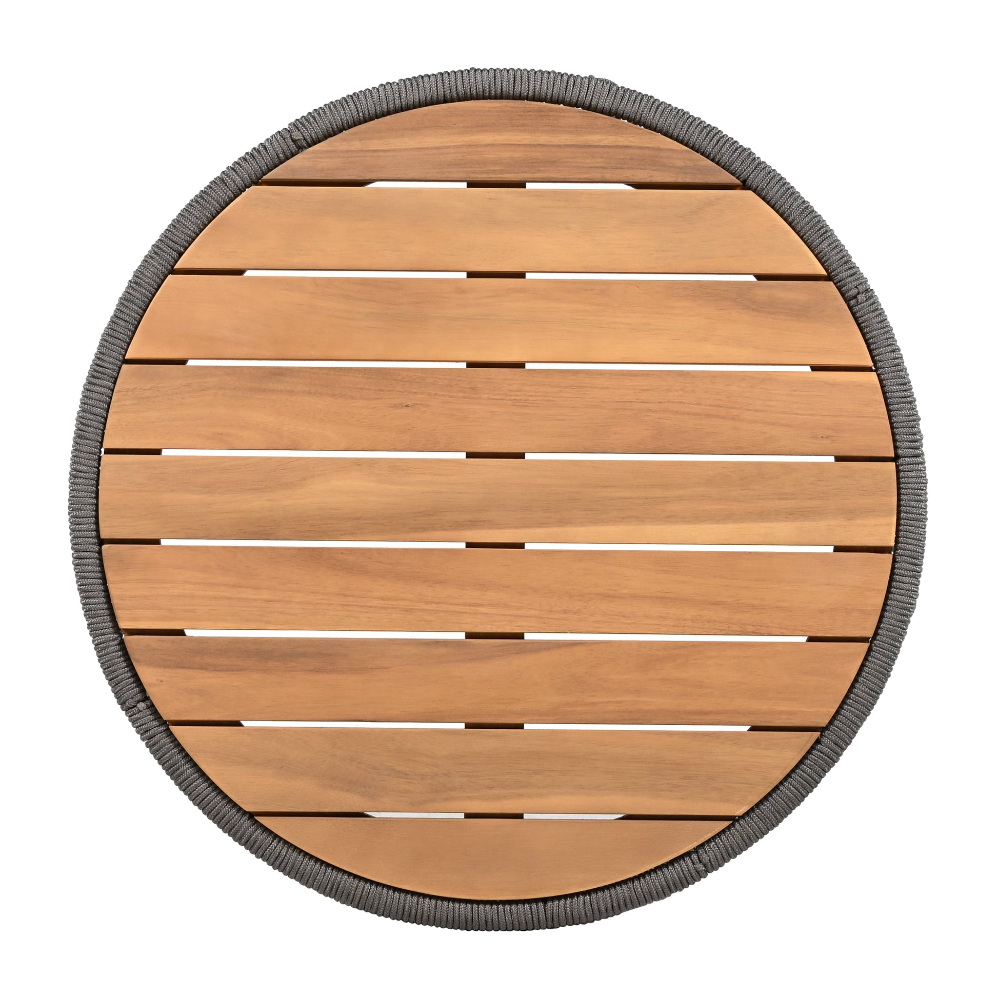 26" Round Acacia Wood Coffee Table with Grey Rope Accents, Rustic Outdoor Patio Table for Garden & Balcony