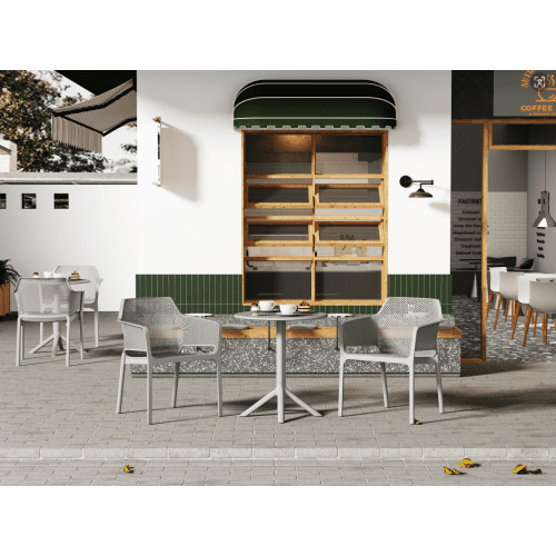 3 Piece Plastic Arm Chair Bistro Grs Premium Ocean Plastic, Light Grey