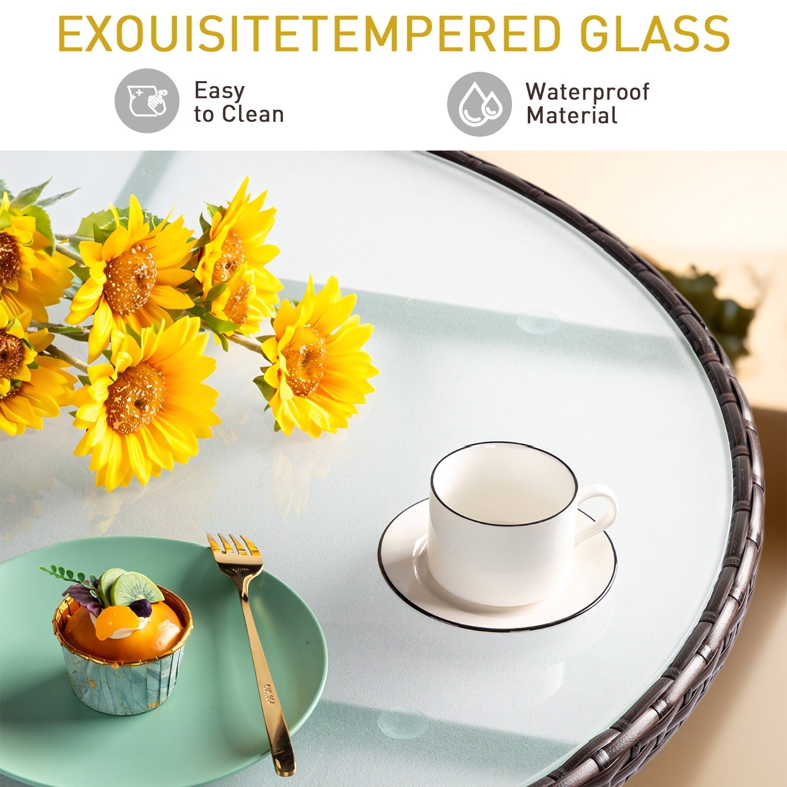 Elevate your outdoor dining experience with this 31.5' Wicker Round Dining Table, perfect for small gatherings of 2 to 4 people. Crafted with premium handwoven rattan, this table brings a touch of nature-inspired beauty to your backyard, deck, porch, or poolside area. The superior glass tabletop is both stylish and durable, resistant to stains and scratches, making it ideal for frequent outdoor use. Designed for long-lasting durability, this table is built to withstand the elements while adding a functional yet elegant touch to your outdoor space. Whether you're enjoying a casual meal or entertaining guests, this table is the perfect centerpiece for any outdoor occasion.