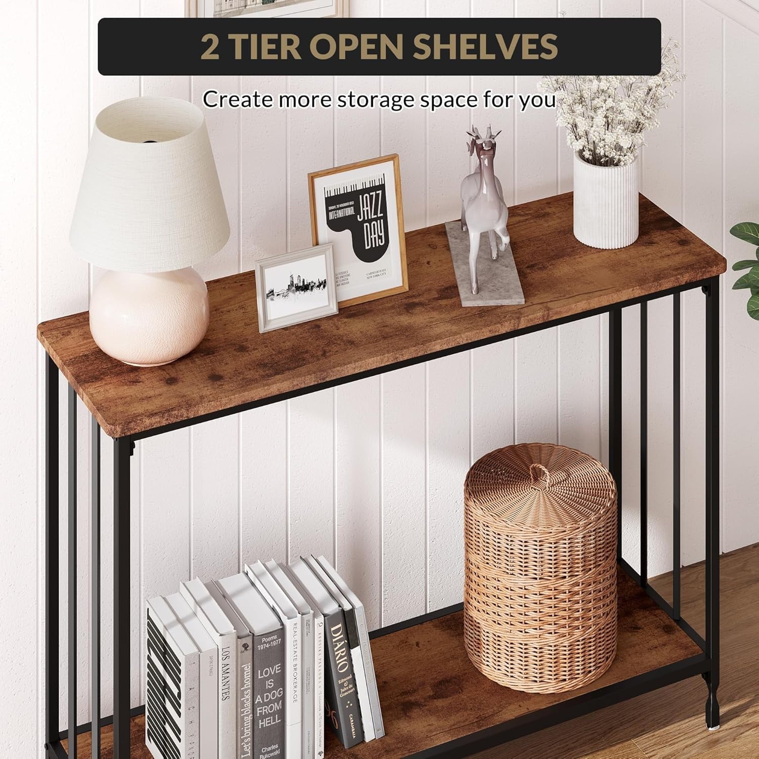 41.3" Entryway Table, Narrow Sofa Table with 2-Tier Storage Shelves & Black Metal Frame, Display Stand and Organizer for Living Room Entryway Office Hallway Bedroom, Retro Color