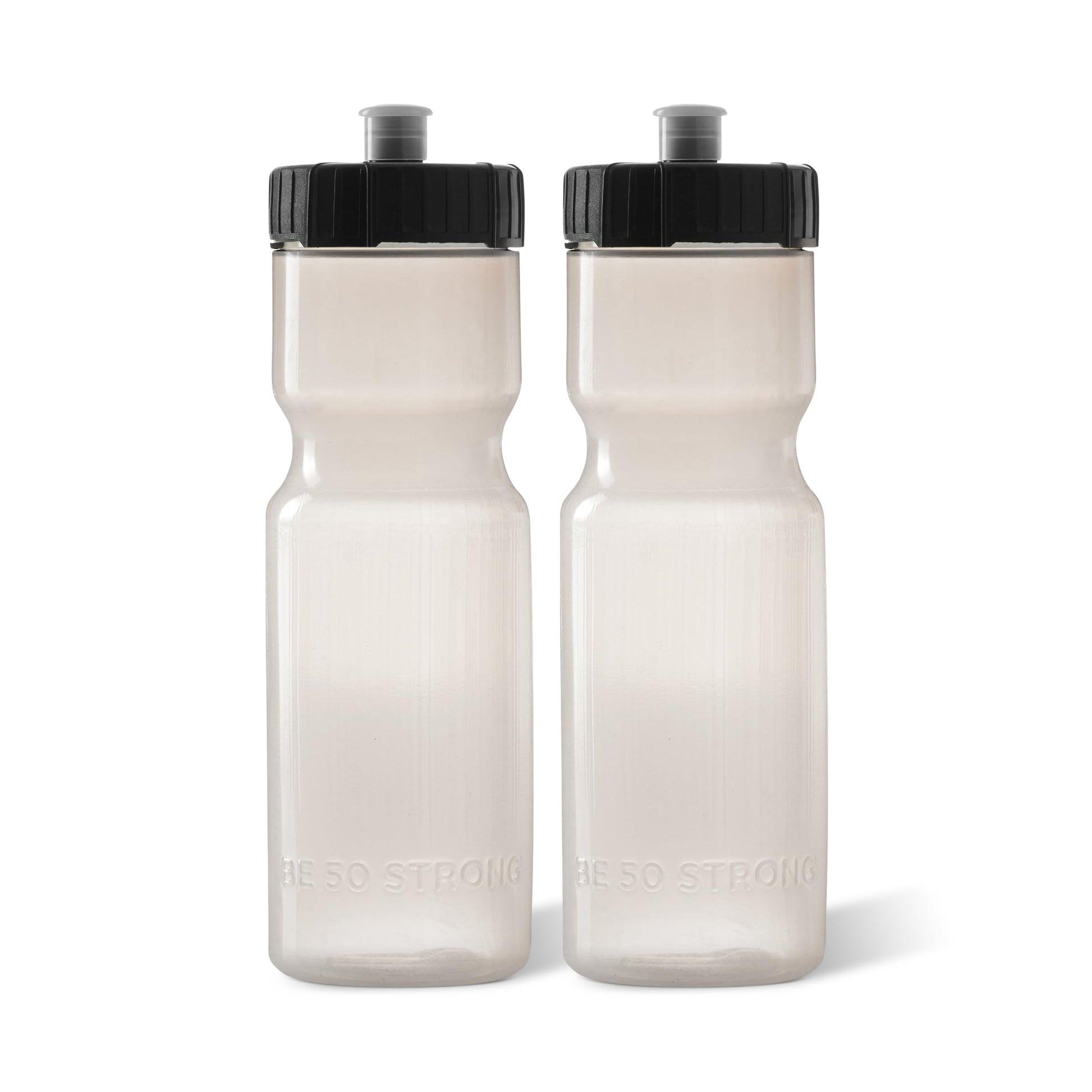 50 Strong Sports Squeeze Water Bottle 2 Pack – 22 oz. BPA Free Easy Open Push/Pull Cap – USA Made (Clear)