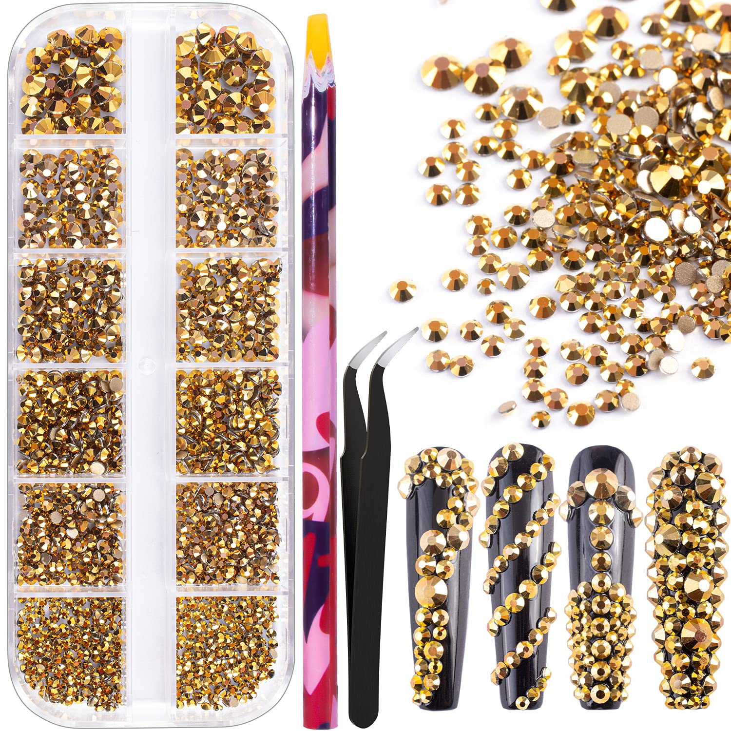 6 Sizes Gold Glass Crystal Kit With Pickup Pen + Tweezer Tools For Shine Nail Art Manicure Makeup Diy Decoration Flatback Round