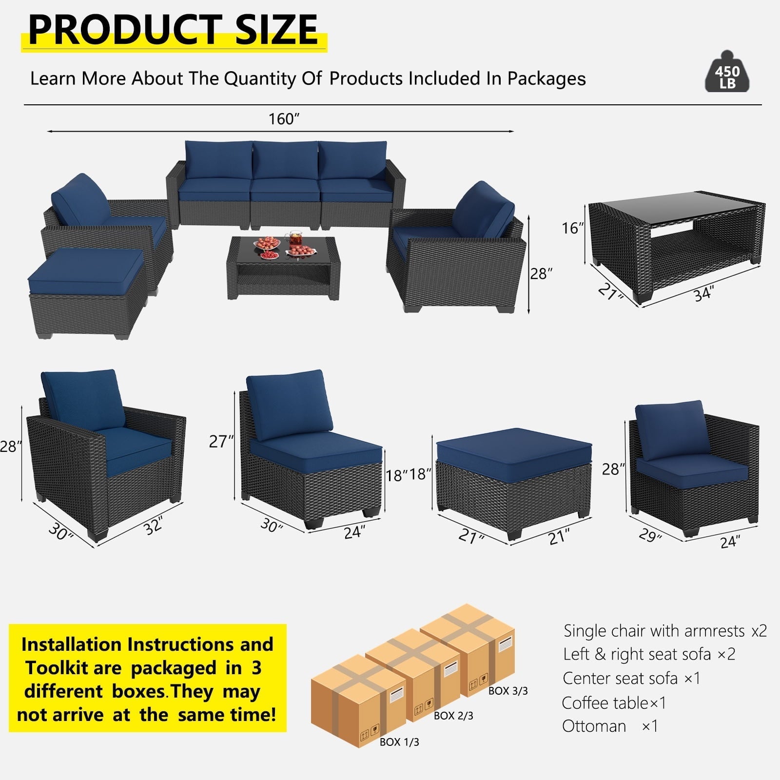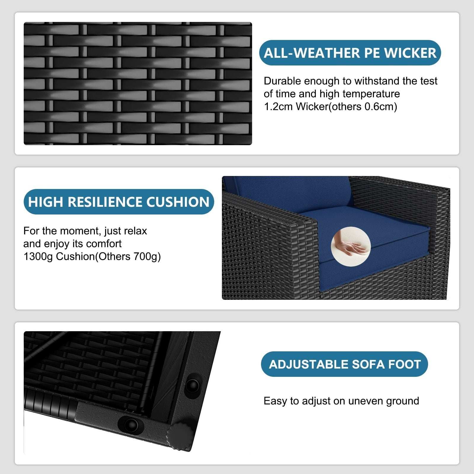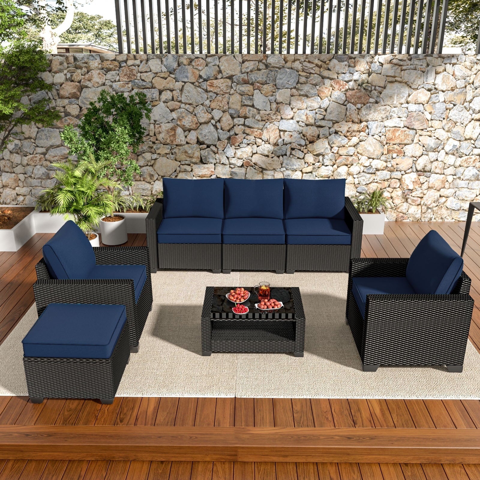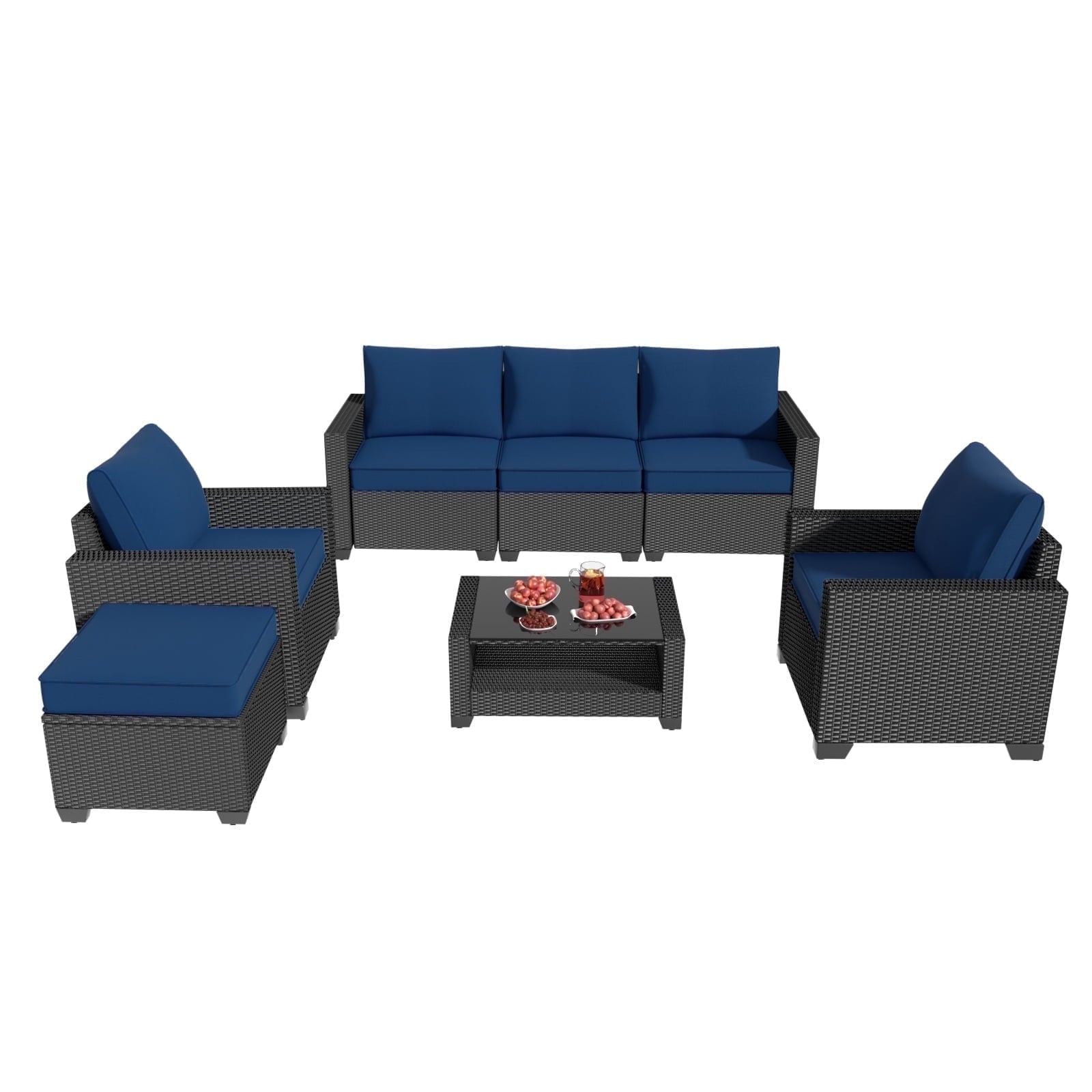 Elevate your outdoor living with this premium 7-piece modular patio furniture set featuring a wicker sectional couch, ottoman, and two-tier coffee table. Designed for ultimate comfort and convenience, the set boasts ergonomic backrests, 4.3' thick cushions, and a versatile modular design that adapts to your space. Enjoy hassle-free setup and maintenance with machine-washable covers and easy assembly. Create the perfect backyard oasis for relaxation and entertaining.