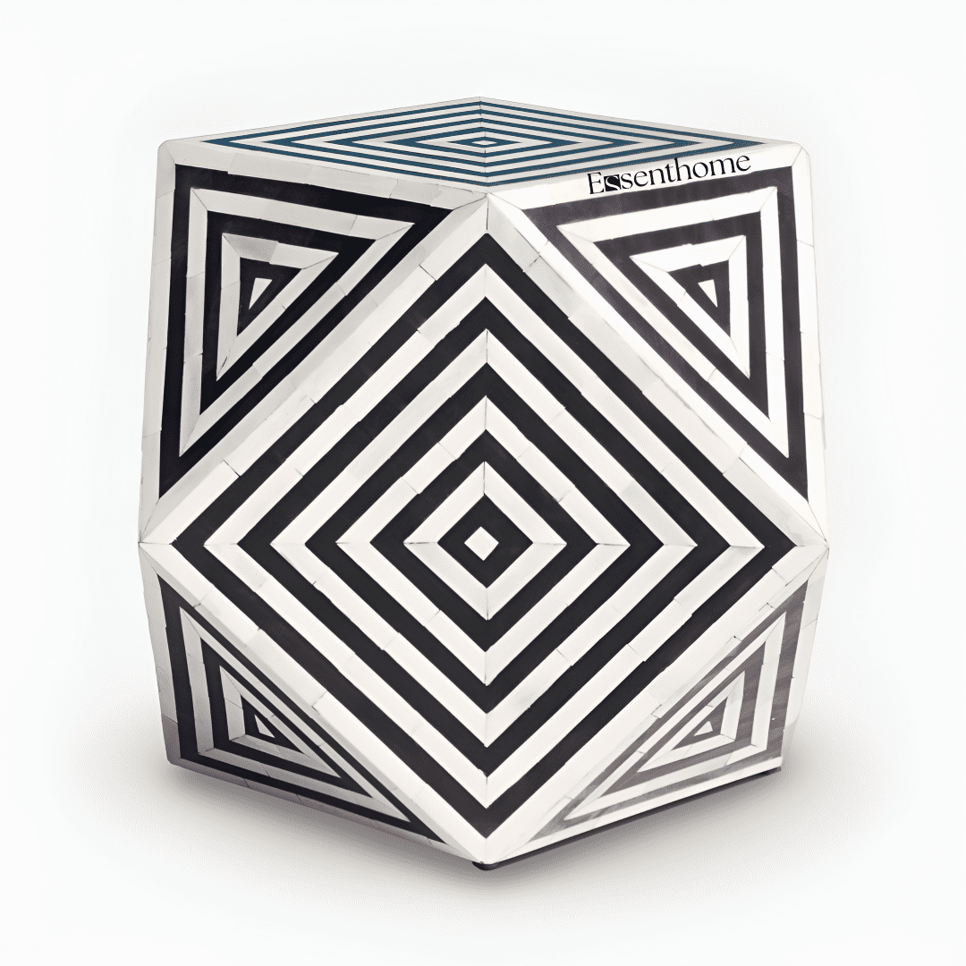 Elevate your interior with this eye-catching Bone and Resin Inlay End Table, designed in a modern abstract pattern that speaks of sophistication and handcrafted excellence. With its compact 12'x12'x18' profile, this artisan-crafted table adds functional charm to small spaces while becoming an instant focal point. Perfect for your bedside, sofa corner, or reading nook, it offers both style and utility in a refined, artistic form.Product Type: End Table / Accent TablePattern: AbstractInlay Material: Ethically sourced bone and resinFrame Material: Acacia woodPrimary Color: White (Bone) with contrasting Resin inlayFinish: Smooth, glossy protective resin coatingDimensions: 12' L x 12' W x 18' HWeight: Approx. 14–18 lbsAssembly: No assembly requiredCare Instructions: Dust with soft, dry cloth; avoid moisture and abrasive cleanersOrigin: Handcrafted in IndiaA Sculptural Statement in Compact FormBring refined artistry and smart functionality into your space with the Bone Inlay Resin End Table in an Abstract Pattern, a versatile design piece that reflects generations of skilled craftsmanship. Small in size but big in impact, this 12'x12'x18' table is the perfect fit for apartments, studios, or rooms that need a subtle yet sophisticated accent.The Art of Bone Inlay:Originating centuries ago in Rajasthan, India, bone inlay is an ancient art form known for its intricate, detailed appeal. Each piece of bone is hand-cut and arranged into abstract, geometric designs that create an interplay of texture, symmetry, and natural beauty. Our artisans hand-place each piece of bone, then fill the spaces with colored resin, forming the design layer by layer.Sourced from ethically obtained camel boneSet into resin using traditional handcraft methodsPolished to a glossy finish to highlight the detailAbstract EleganceThe abstract pattern on this table gives it a contemporary edge while still retaining the handcrafted soul of traditional Indian artistry. The visual flow of the inlay catches the eye and offers something fresh from every angle. Whether your style leans modern, boho, eclectic, or transitional, this end table complements a wide range of decors.Multi-Functional and VersatileWhether placed next to a sofa, beside a bed, or used as a stand-alone art piece, this end table adapts to your needs:Bedside Table: A sleek surface for a lamp, book, or glass of waterLiving Room Accent: Display candles, décor, or potted plantsOffice Corner: Add elegance to your reading or waiting nookEntryway Piece: A subtle surface for keys and essentialsSmall Size, Big Design Impact:At just 12'x12', this table fits into any corner or space where standard furniture may feel bulky or overwhelming. Despite its compact frame, the bold pattern ensures it won’t be overlooked. It’s a conversation starter and a style enhancer in one.Premium Build and Materials:Crafted from durable acacia wood, this table is built to last. The base structure ensures stability and durability, while the hand-inlaid bone and resin top creates a sturdy, wipeable surface perfect for daily use.Solid wooden base – prevents wobbling and saggingHand-applied resin topcoat – protects from scratches and spillsLightweight yet stable – easy to move or rearrangeNo Assembly, No Hassle:Your table arrives fully assembled and ready to place. No tools, no complicated instructions—just unbox and enjoy. This makes it an ideal gift for housewarmings, weddings, or for upgrading your own décor effortlessly.Handcrafted Heritage:Each end table is a one-of-a-kind piece. Slight variations in color, shape, or alignment of inlay pieces are part of the natural beauty of the handmade process. When you purchase this product, you’re supporting a centuries-old craft and the artisans who preserve it.Care Instructions;This inlay table is designed to last when properly cared for. Follow these simple steps to preserve its finish:Dust regularly with a soft, dry clothAvoid placing in direct sunlight or humid environmentsDo not use chemical or abrasive cleanersProtect surface from sharp or heavy objectsA Unique Gift or Decor UpgradeLooking for a memorable gift? This artisan-made end table makes a great choice for:HousewarmingWedding registryHoliday surpriseDesign-conscious loved onesOr use it to upgrade your own home décor with something that’s handmade, ethical, and luxurious.