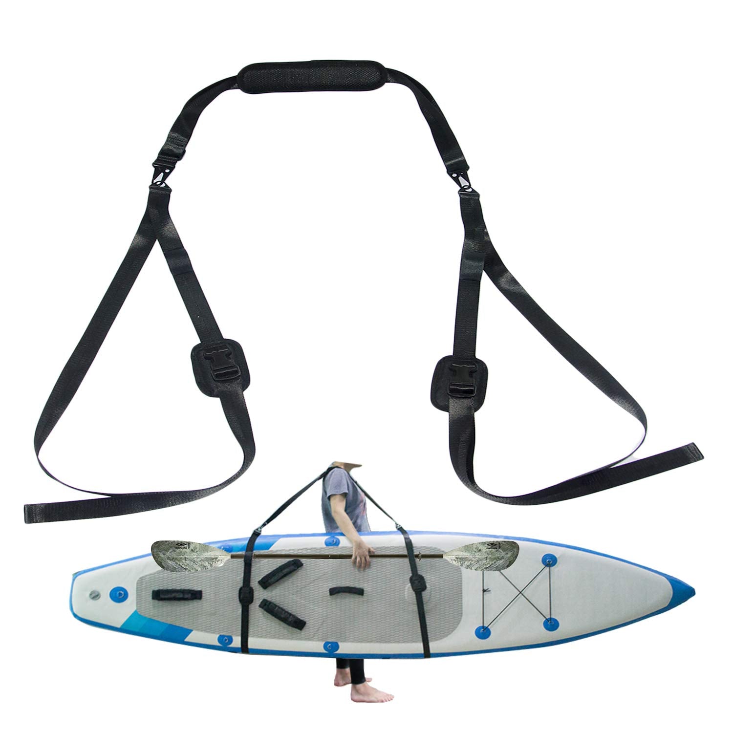 - Multi-use shoulder carry strap with quick attach/release strap buckles, easy to put on/off the kayak, sup, paddle board, inflatable raft