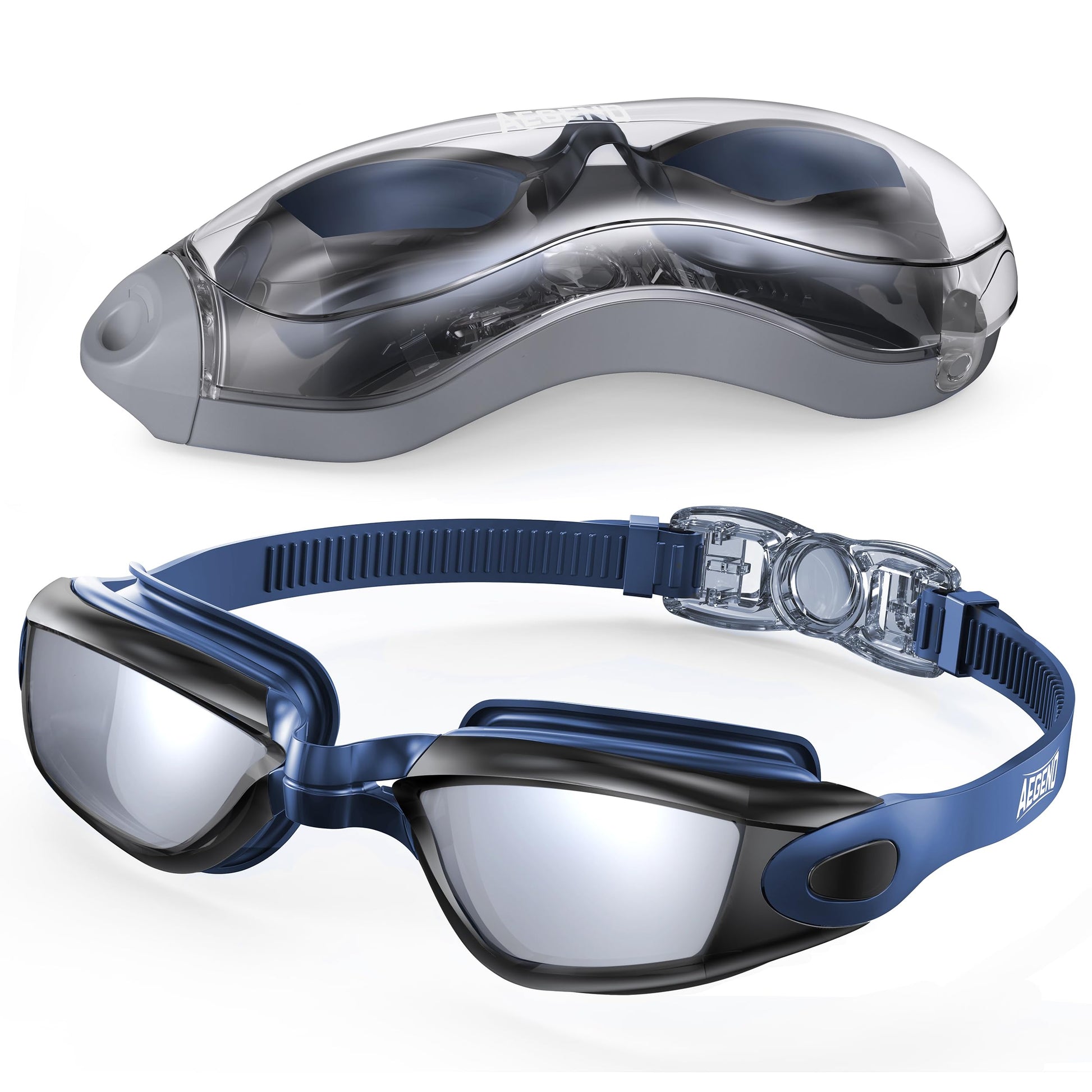 Aegend Swim Goggles, Swimming Goggles No Leaking Full Protection Adult Men Women Youth,Black With Blue Strap