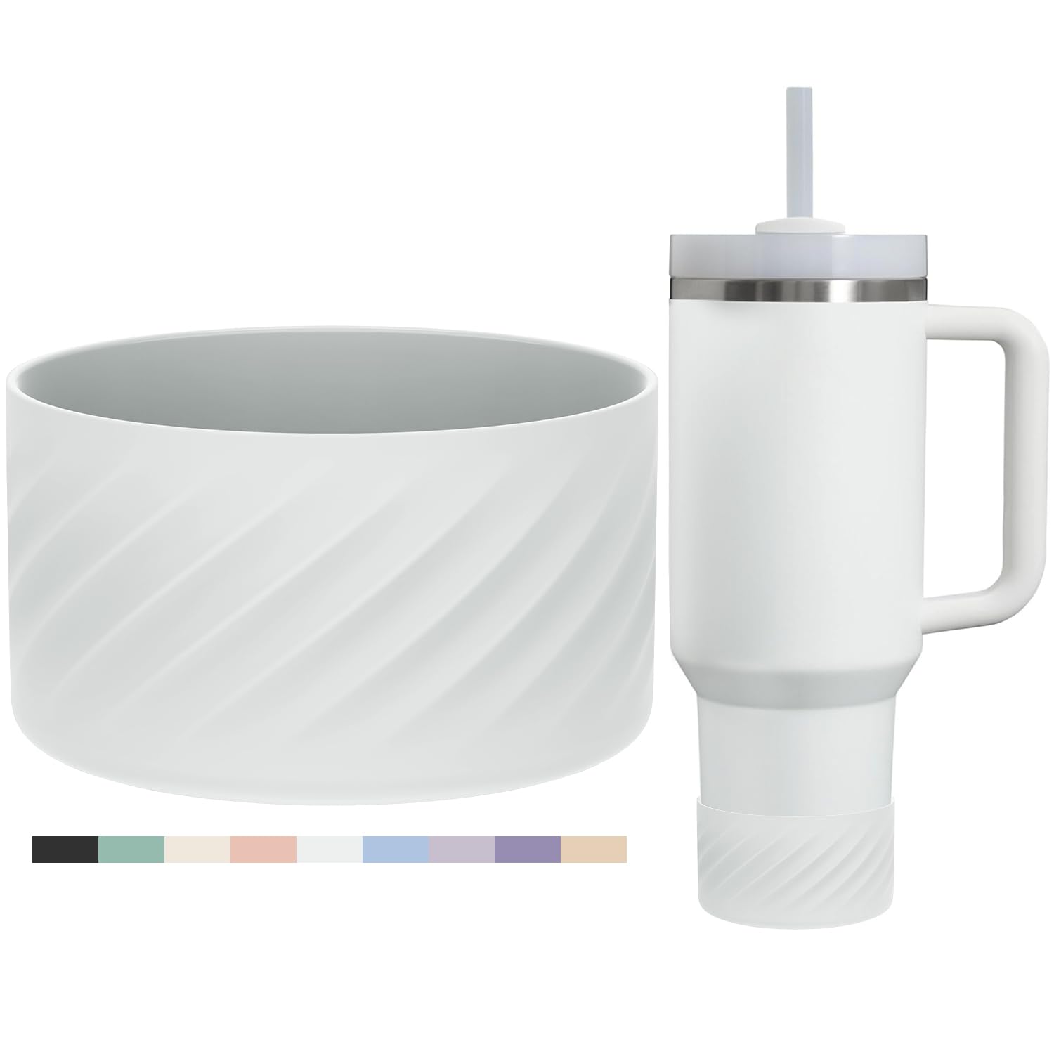 Affute Protective Silicone Boot for Stanley Quencher H2.0 40 oz & IceFlow Flip 20 oz 30 oz and hydroflask 12-24 oz, Anti-Slip Bottle Bottom Sleeve Cover (Frost)