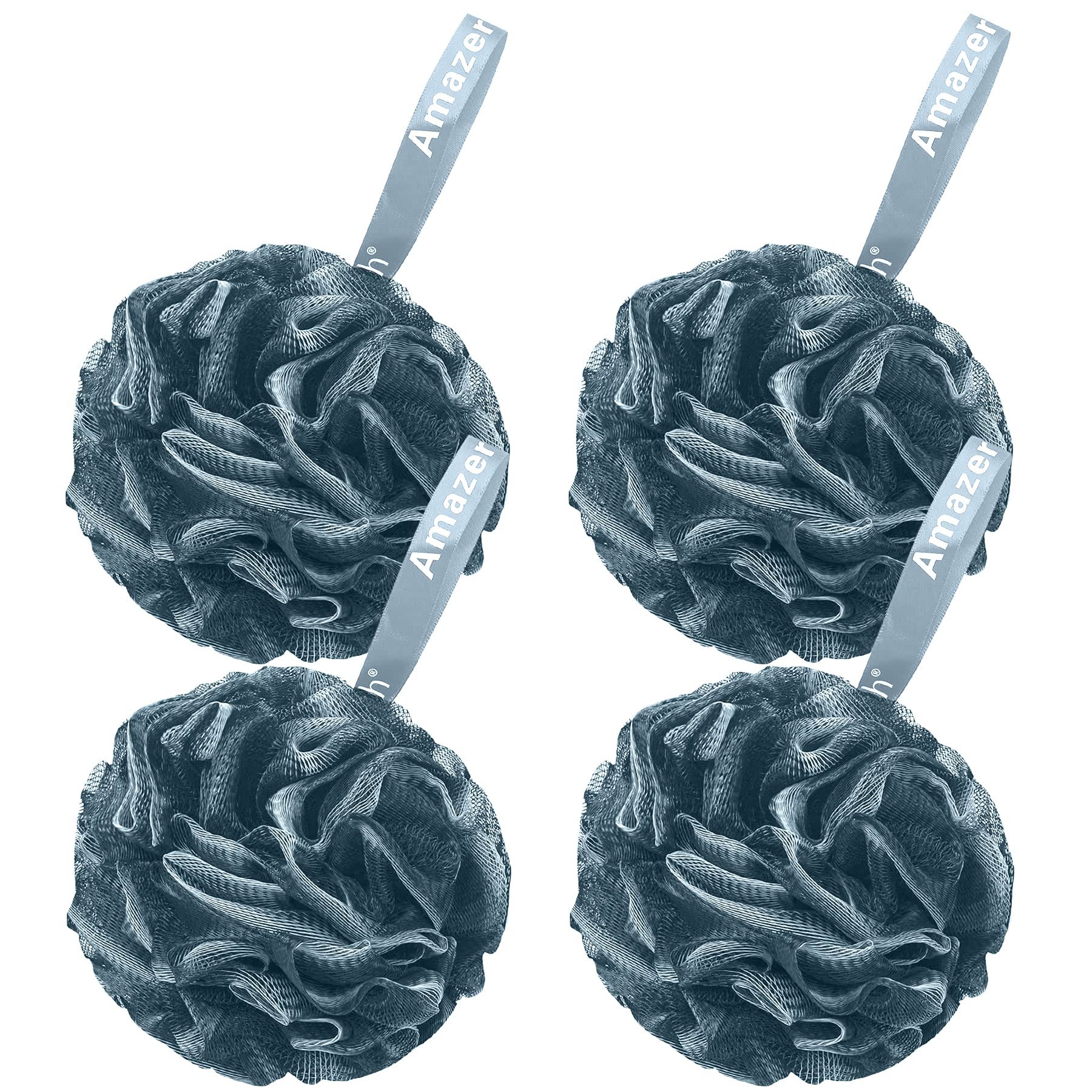 AmazerBath Bath Shower Loofah Sponge 60g/PCS Bath Sponges for Men Exfoliating- Set of 4 Indigo