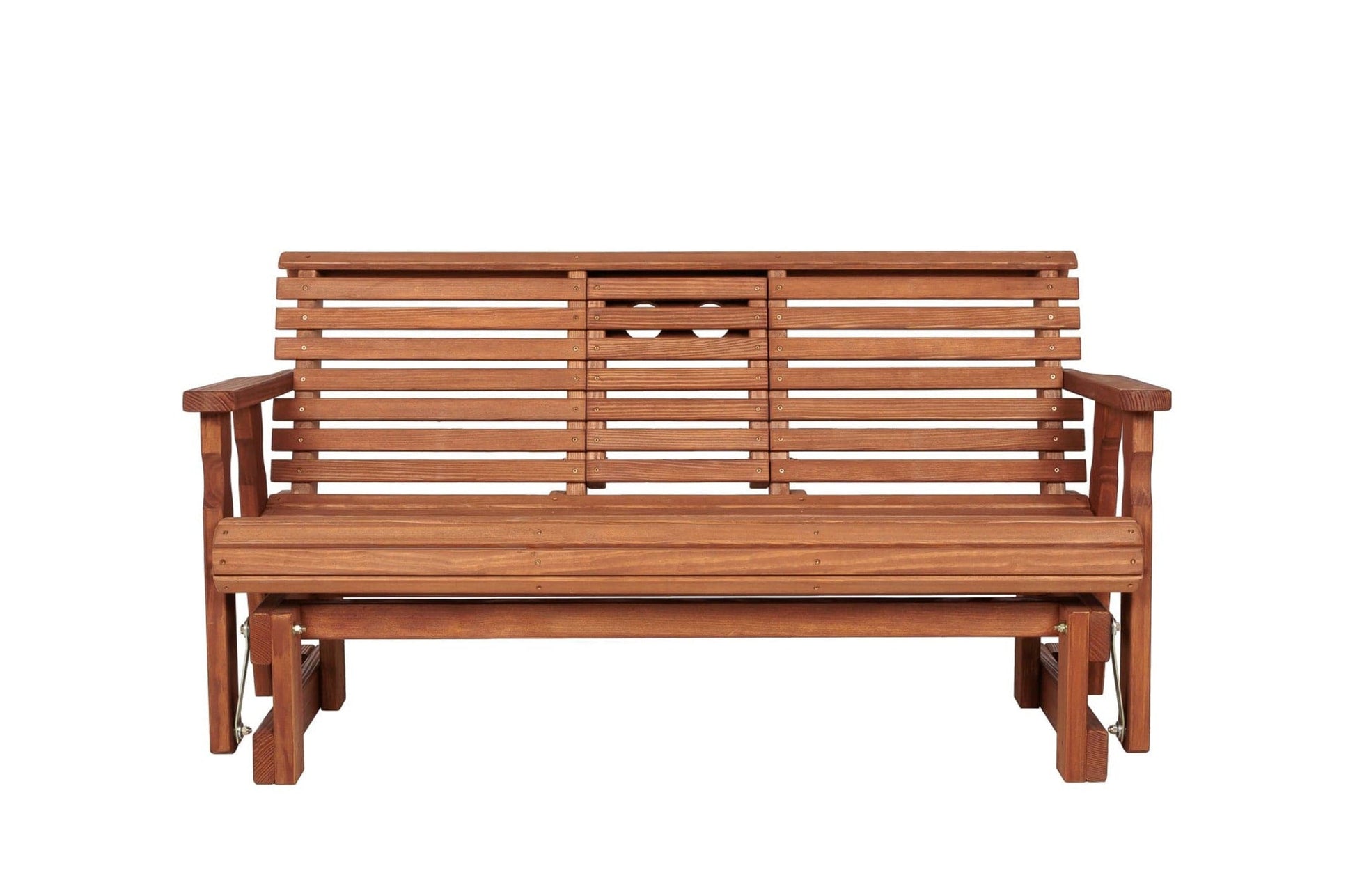 The Amish Casual Heavy Duty Rollback Console Glider by Amish Casual features a flip-down console in the middle that can hold up to two beverages. The center console can be flipped up when not in use to allow for more seating space. The Rollback Console Glider is made in the USA by skilled Amish Craftsmen.