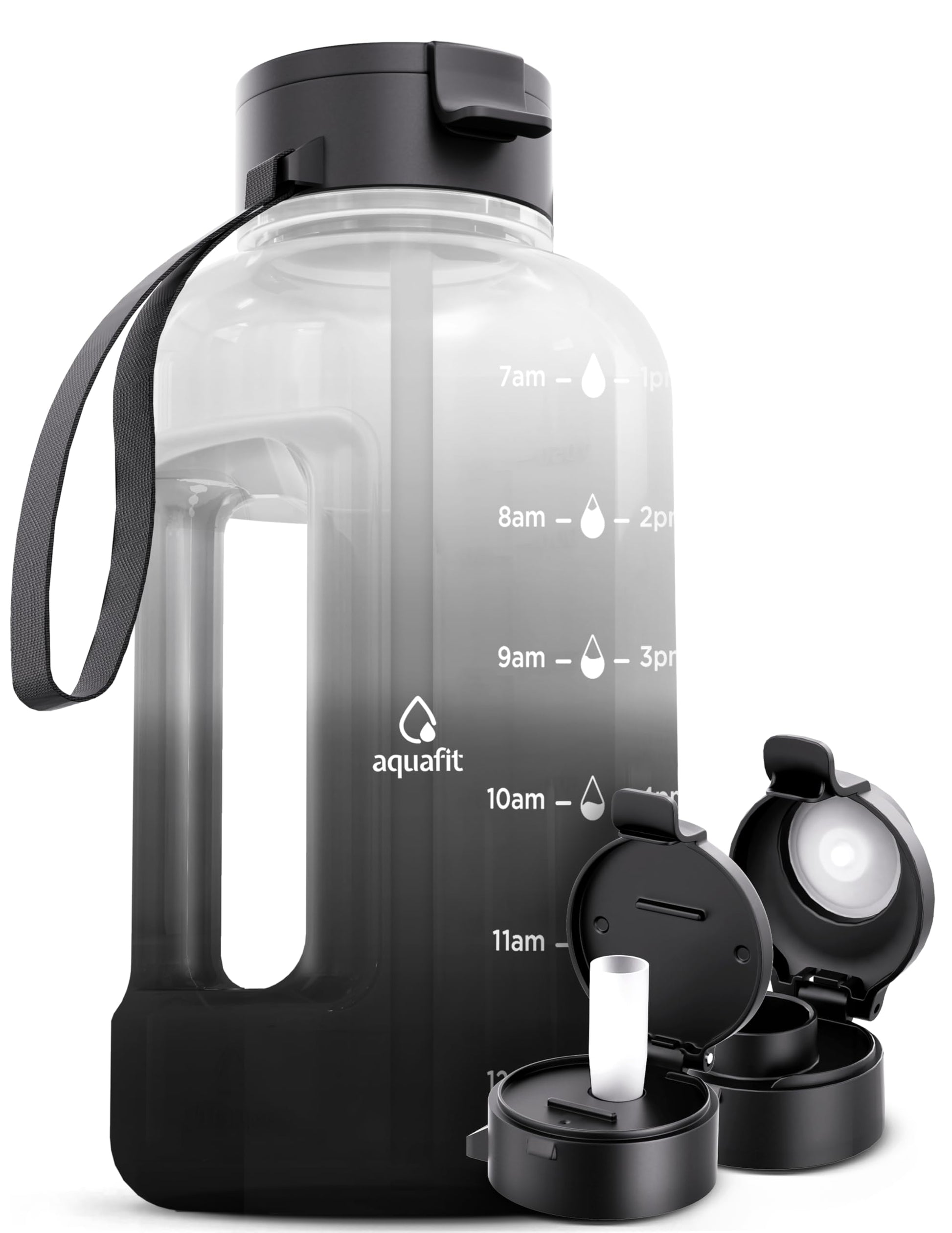 AQUAFIT 40 oz Water Bottle with Time Marker - Straw & Chug Lid - BPA Free Half Gallon Water Bottle, Big Water Bottle with Straw - Gym Water Bottle with Handle, Gallon Water Jug (Midnight Gray, 40 oz)
