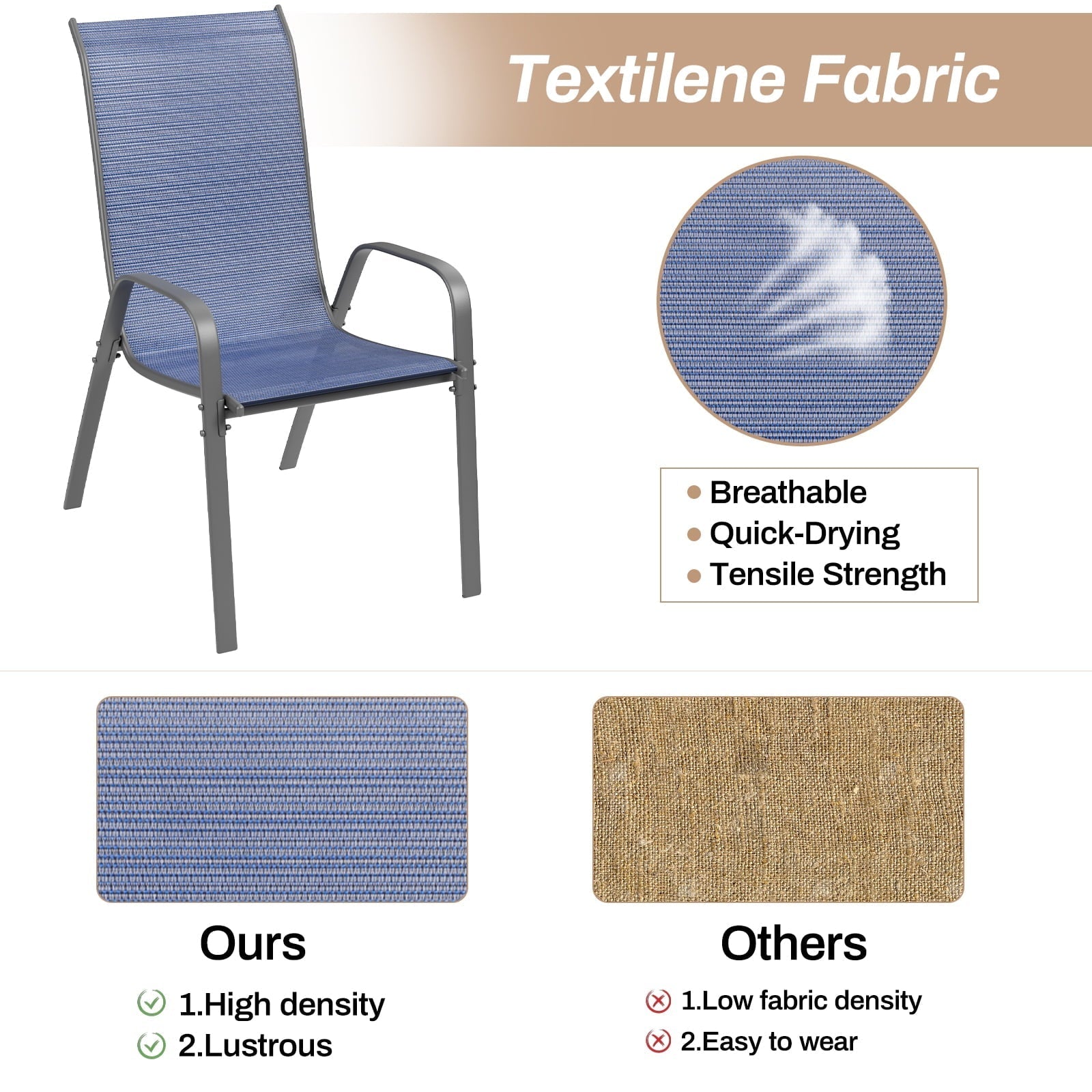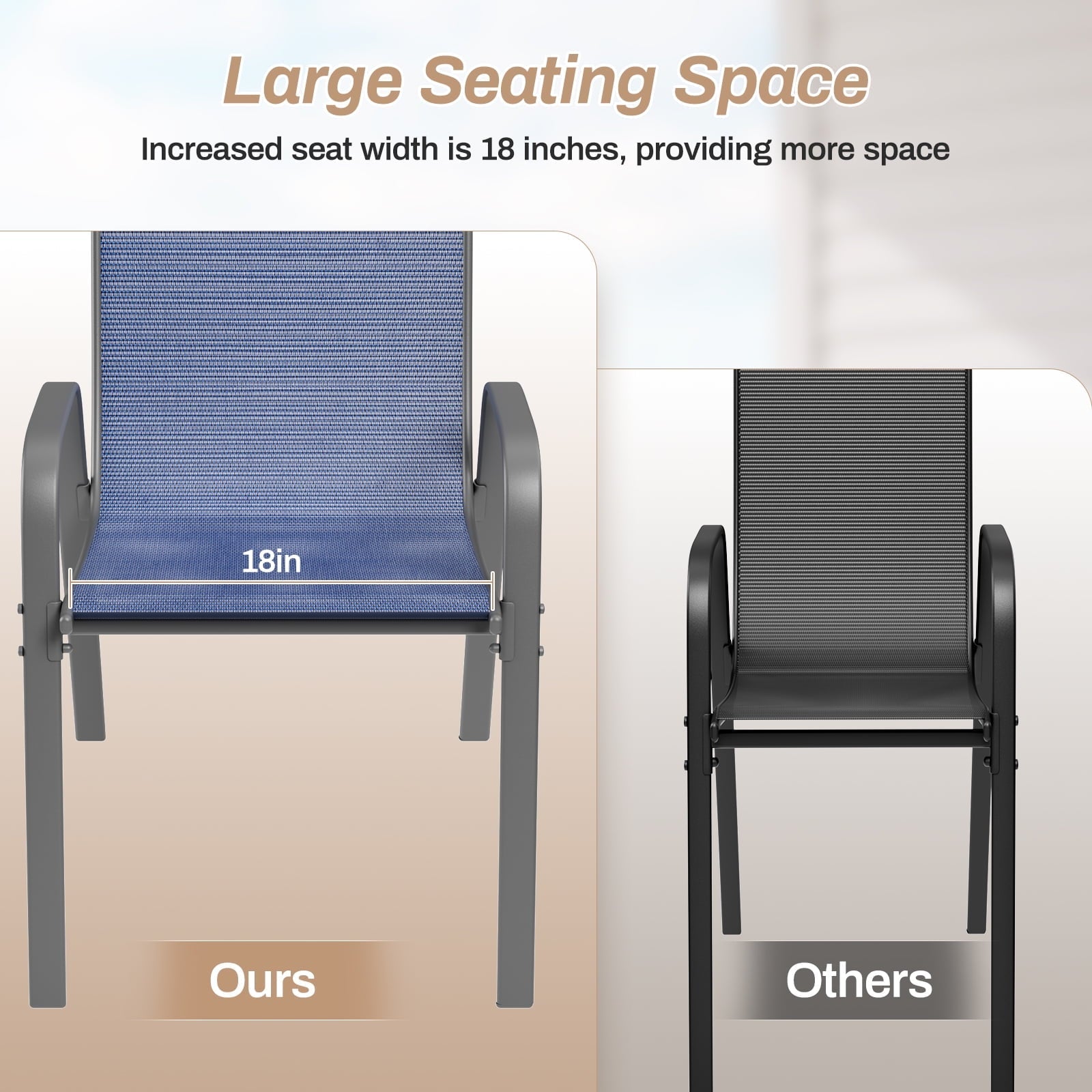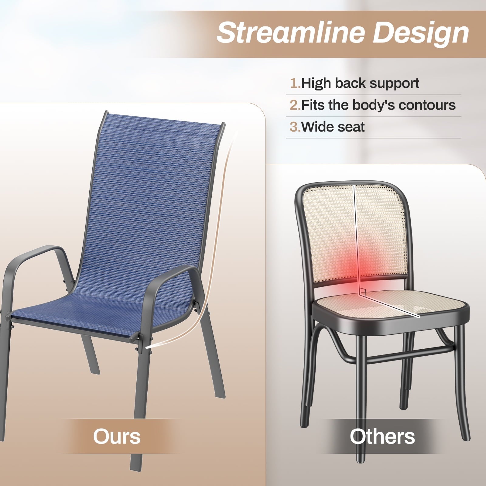 Arlopu patio dining chairs feature powder-coated steel frames for durability (supports up to 330 lbs) and breathable, quick-drying textilene fabric on seats/backrests for summer comfort. With a simple design, this 4 chair set suits poolside, backyard, or garden use. Stackable for easy storage.