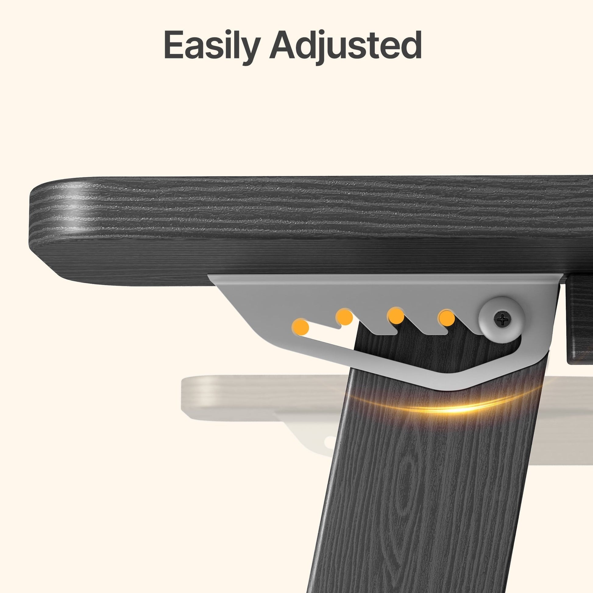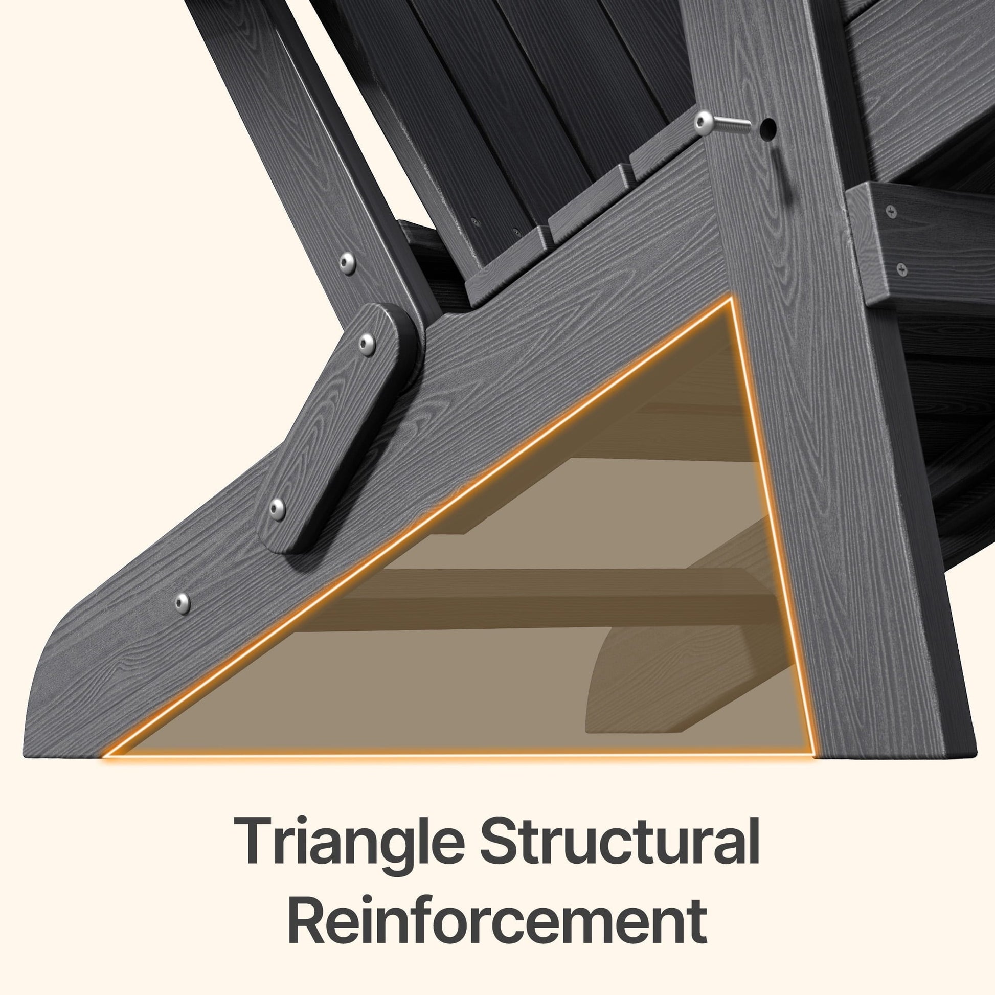 Asofer durable Folding Adirondack Chair and Retractable Ottoman, Wooden Textured with two Cup Holders,HDPE Poolside Backyard Lawn Coffee, Black