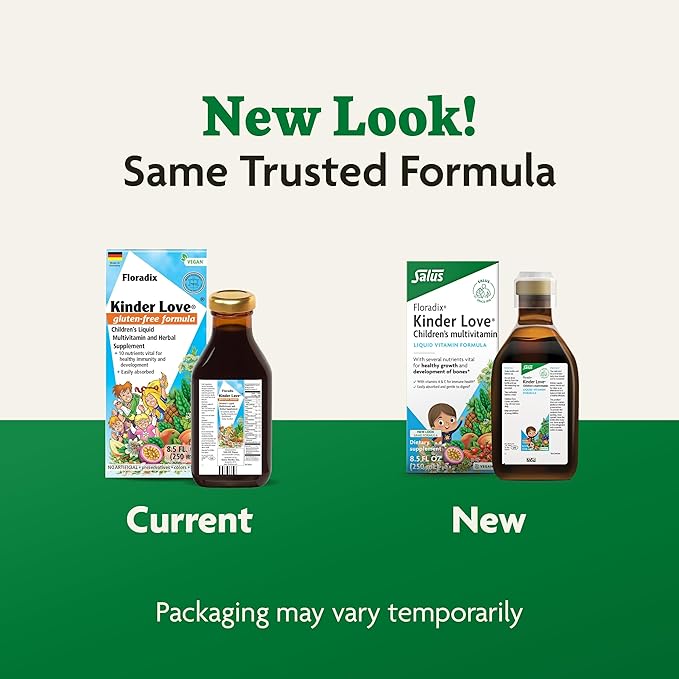 Floradix Kinder Love Children's Multivitamin - Liquid Multivitamin for Kids with Vitamins A, C, D & E, Calcium & More - Vegetarian, Non-GMO, Gluten-Free - 8.5 fl oz