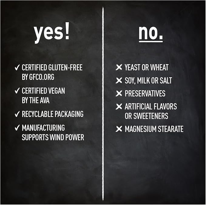 - CONTAINS ABSOLUTELY NO: Yeast - Corn - Wheat - Soy - Milk - Salt - Sugar - Preservatives - Artificial Color