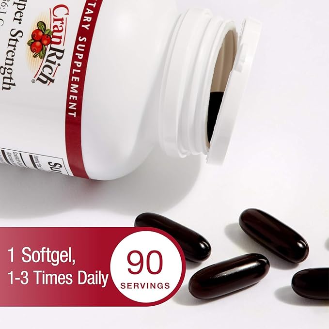 CranRich by Natural Factors, Super Strength Cranberry Concentrate, Antioxidant Supplement for Urinary Tract Support, Non-GMO, 90 softgels (90 servings)