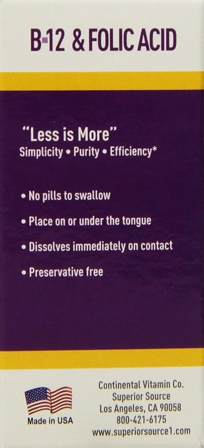 - Sublingual Vitamin B: Superior Source vitamin B-12 and folic acid tablets are designed for sublingual use, dissolving quickly for enhanced absorption