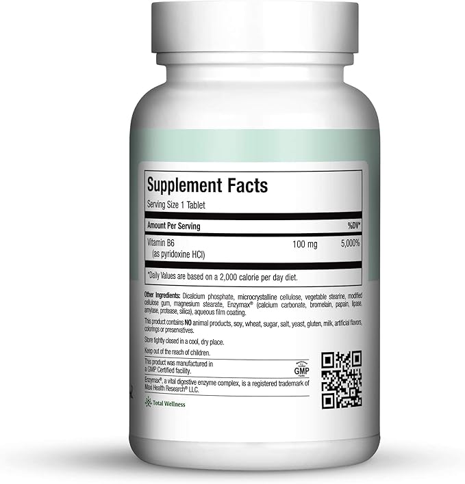 Maxi Health B-6 - Vitamin B6-100 mg Cardiovascular Health - 100 Tablets - Kosher (100 Count, Pack of 2)