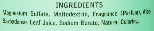 - INGREDIENTS: Magnesium Sulfate, Maltodextrin, Fragrance (Parfum), Aloe Barbadensis Leaf Juice, Sodium Borate, Natural Coloring