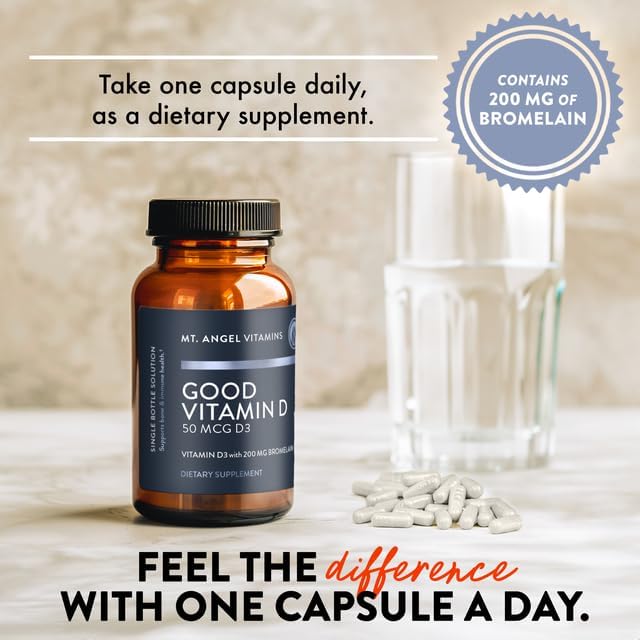 Mt. Angel Vitamins - Good Vitamin D, 2000 IU Vitamin D3 with Bromelain (60 Capsules)