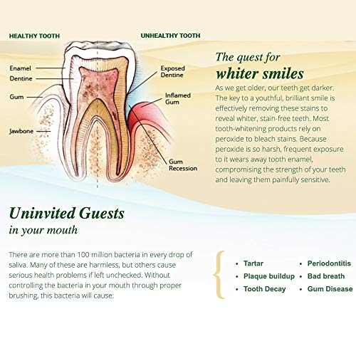 - Papain—a natural enzyme from papaya, it safely helps break away and dissolve stains on the teeth for whiter smiles instead of bleaching teeth and damaging enamel like peroxide can
