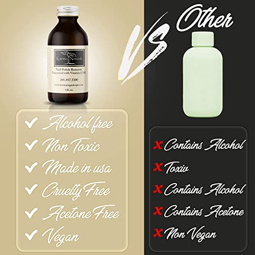 - ❤ NATURAL INGREDIENTS: Every beauty-conscious person wants natural products. Karma Organic nail polish remover ensures pure & natural ingredients that work on various nail polishes; gel, glitter, matte. Our acetone-free nail polish remover contains natural Soybean oil. With no toxic ingredients, our formula is simply gentle, nourishing, and effective!