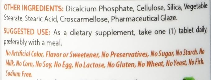 - No Artificial Color, Flavor or Sweetener, No Preservatives, No Sugar, No Milk, No Corn, No Soy, No Egg, No Lactose, No Gluten, No Wheat, No Yeast, No Fish. Sodium Free.