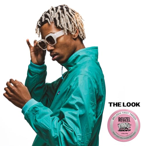 REUZEL Pink Grease Pomade, Strong All Day Hold, Oil-Based Styling Wax, Medium Shine and Flake Free, Easy To Wash Out, For All Hairstyles