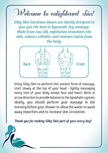 Silky Skin Garshana gLoves Raw Silk Massage - Quality Storage Bag - Ayurvedic Dry Brushing Exfoliate Skin Lymphatic Drainage Brush Reduce Acne Scars Cellulite Massager Remove Toxin