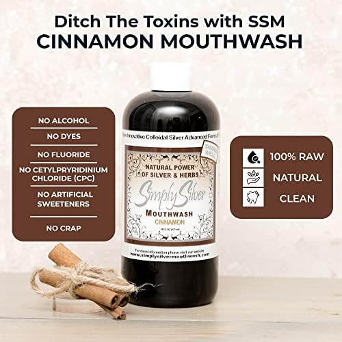 Simply Silver Mouthwash Cinnamon Flavor-All Natural Colloidal Silver Mouthwash with Patent Pending Formula, Alcohol and Fluoride Free, 16 oz