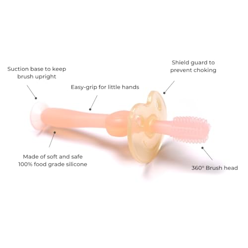 Haakaa 360° Silicone Baby Toothbrush – 100% Soft Food Grade Silicone, BPA-Free, Suction Base, Safe for Babies 6 Months+, Gentle Gum and Teeth Cleaning for Infants, Gum Massager (Pink)