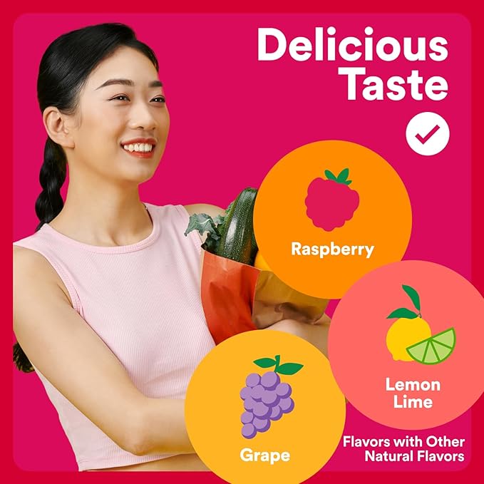 - DELICIOUS TASTE & NON-GMO: Raspberry, Lemon Lime, and Grape Flavors with Other Natural Flavors. Adult women take 4 gummies daily. May be taken with or without food