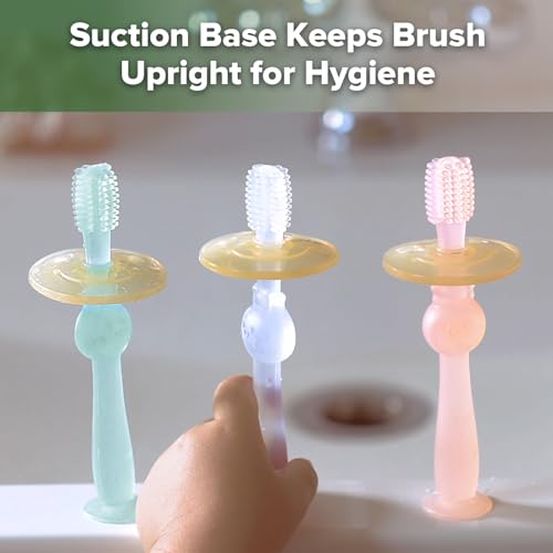 - INSTILL EARLY ORAL HYGIENE ROUTINES: The perfect ‘first toothbrush’ to set up good brushing habits from an early age. Suitable to use even before baby’s first teeth emerge.