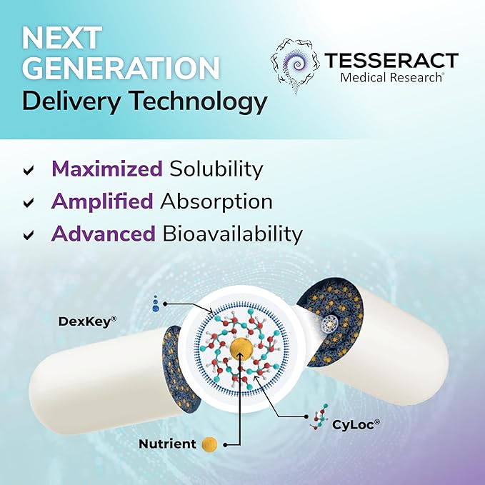 - Unrivalled Delivery: Tesseract’s proprietary nano-molecular delivery science results in optimal absorption and bioavailability at micro-doses. A ground-breaking transport and time-release system that enables you to receive the product’s full health benefits