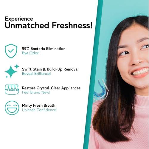 - ORAL DENTAL APPLIANCE CLEANER - Achieve a superior clean for dentures, Invisalign, retainers, aligners, and mouthguards with our retainer cleaner tablets or mouth guard cleaner. Our mouthguard cleaners help restore dental appliances to a bright, like-new condition. Feel refreshed and ready to take on your day with our invisalign cleaner tablets.