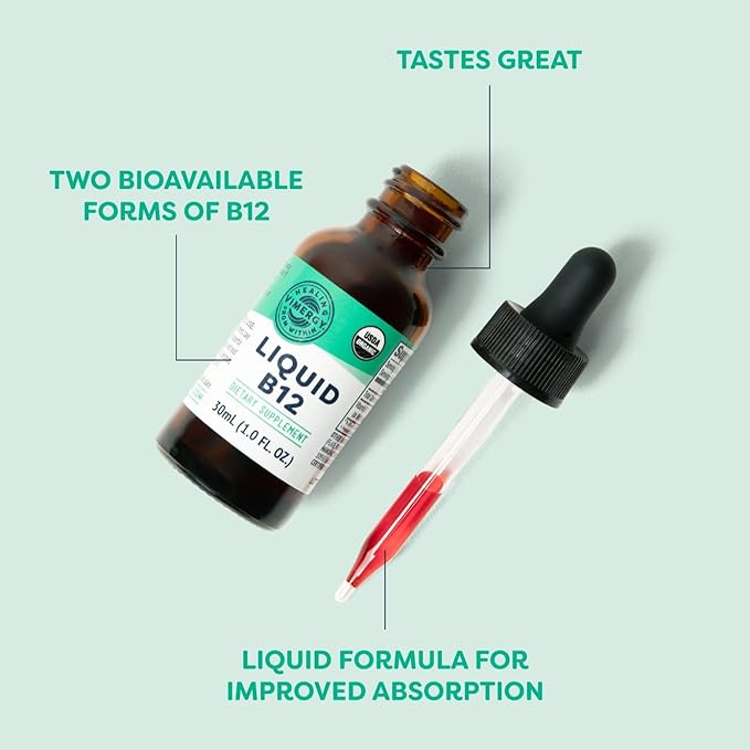 Vimergy Liquid B12 – Fast-Absorbing Brain Support – Energy Support Supplement – USDA Certified Organic, Vegan, Non-GMO – 30 Servings (30 mL)