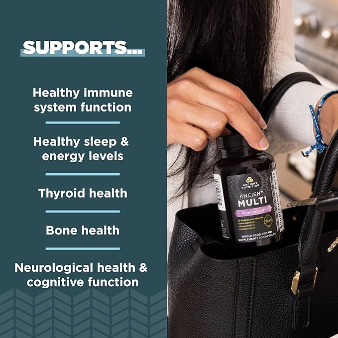 Ancient Nutrition Multivitamin for Women 40, Multi Vitamin and Immune Support with Vitamin D & C, 20 Vitamins and Minerals, Stress and Sleep Support, Supports Bone and Blood Health, 90 Capsules