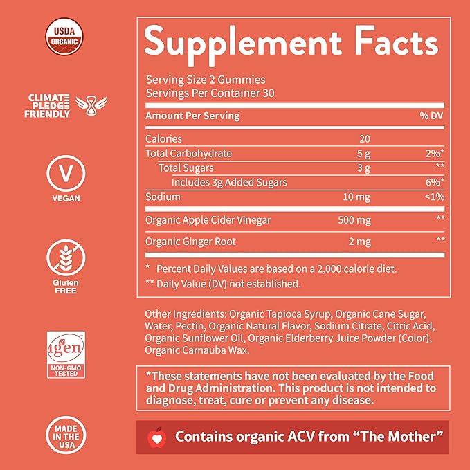 - [Pure Organic Apple Cider Vinegar Gummies] Designed to support your overall wellness. These delicious USDA Organic gummies contain apple cider vinegar from 'the mother' and acetic acid, which may help cleanse your body.