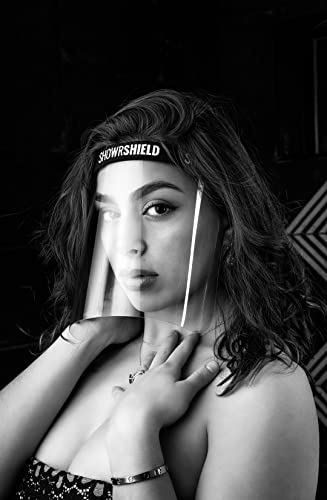 - SHOWRSHIELD was designed to be very lightweight, comfortable, safe & water-resistant while showering. We use a high-grade durable lightweight plastic for the clear facial shield. The plastic shield conforms to your forehead providing a flexible water-deflecting seal. We don’t use a glass shield because it is heavy, inflexible, non-confirming, expensive, & a serious safety hazard if it shatters if dropped in the shower.