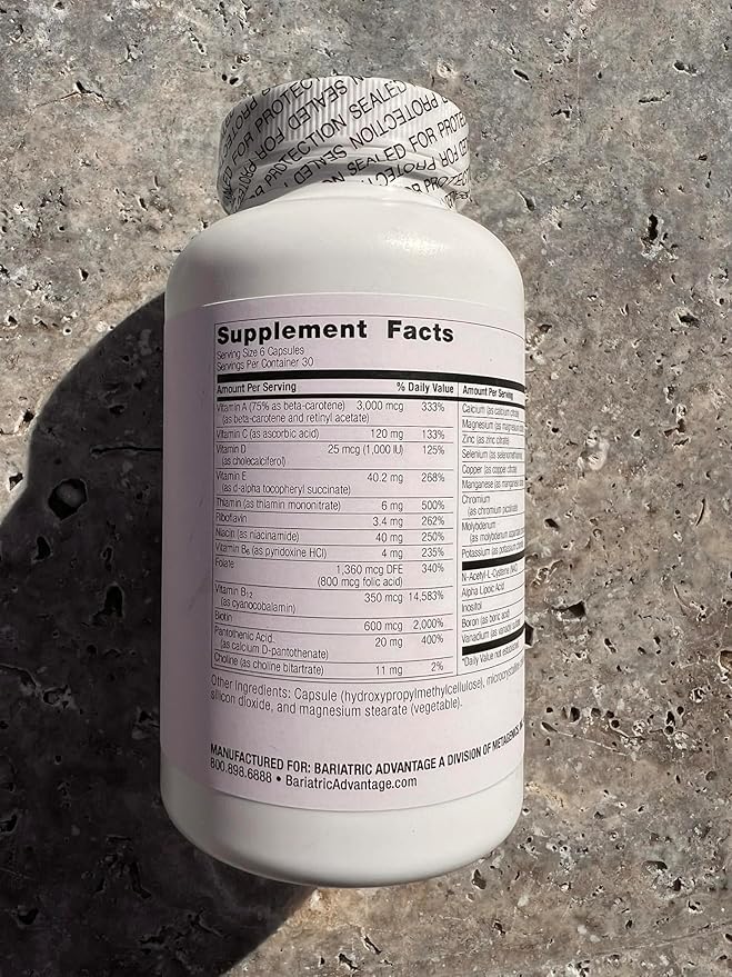 Bariatric Advantage Multi Formula without Iron, High Potency Daily Multivitamin for Bariatric Surgery Patients with 22 Essential Vitamins and Nutrients - 180 Capsules