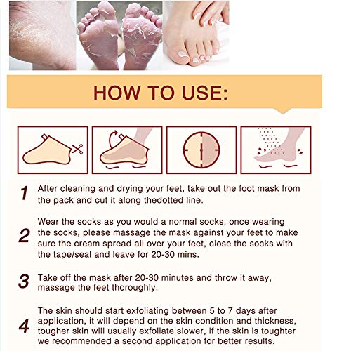 - 【Wearable Sock Type Foot Peeling Mask】- Our foot masks designed to wrap your feet like socks, that allows the feet to absorb the essence in all directions. You can wear regular socks over the foot masks to keep the mask close to the skin, and to aid with walking.