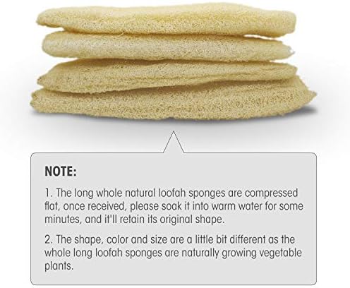 - ➤ 4 Pack of Large Natural Loofah Sponges should last over a year with average use of 4 months per sponge. The sponges are compressed flat when they ship and needs to be rehydrated in warm water before using. One Whole Natural Loofa: Approximate Size:11.8 inch-15.7 inch(30-40cm).