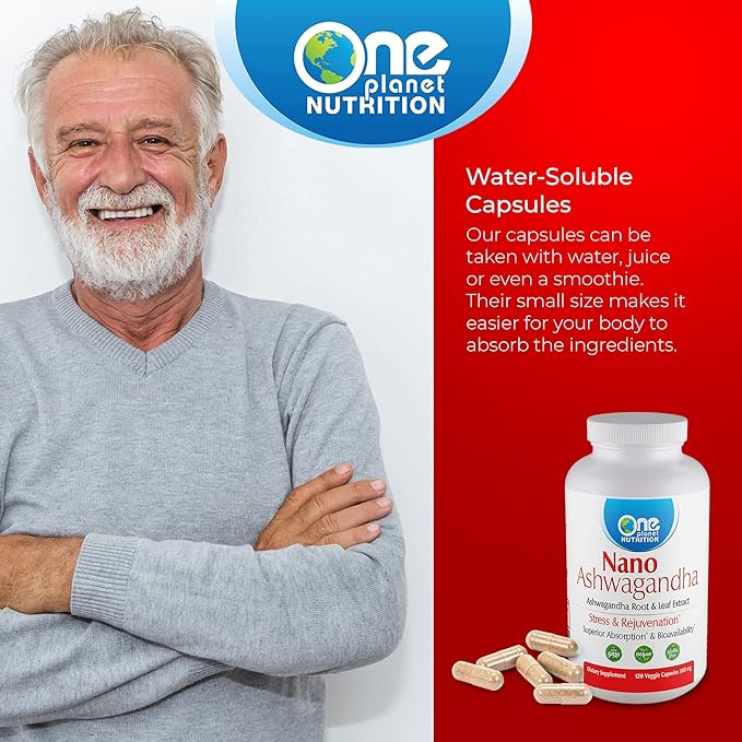 - NO GMOS: Nano Ashwagandha is a gluten-free, Non-GMO plant-based supplement made using all-natural ingredients in an FDA-registered cGMP facility in the US. Raw Ashwagandha is shrunk using a proprietary patented process to a size of fewer than 100 nanometers to improve cellular absorption.