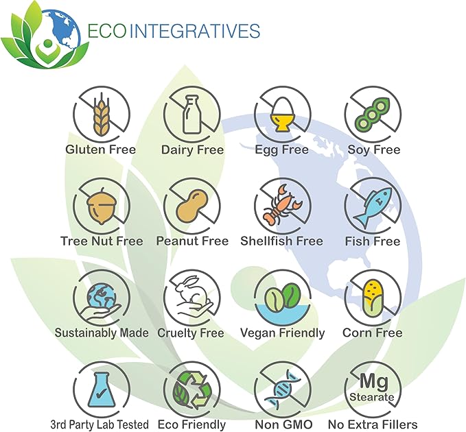 - ✅ Vegan Friendly, Non-GMO FREE FROM: Dairy, Gluten, Egg, Nuts, Peanuts, Fish, Shellfish, Soy, Wheat, NO Magnesium Stearate, NO Stearic Acid