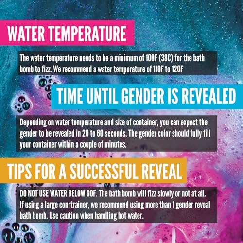 - HOW IT WORKS: Reveal your baby's gender by dropping your gender reveal bath bomb into hot water (100F to 120F) and watch as your baby's gender color is revealed as it fizzes!