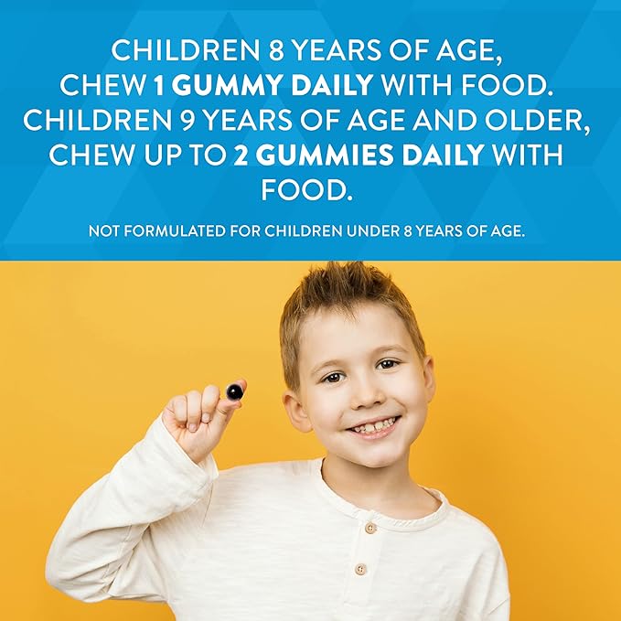 - Delicious grape flavor makes taking these gummies fun and beneficial. Children 8 years of age, chew one gummy daily. Children 9 years of age and older, chew two gummies daily.