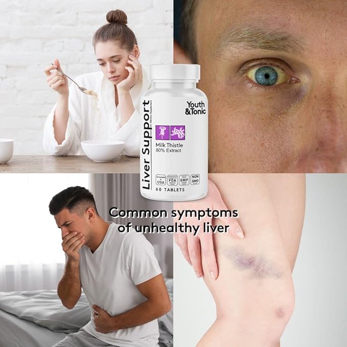 Youth & Tonic Liver Detox Cleanse Supplement – Silymarin Milk Thistle Complex Formula for Body Health, Repair & Support – Non-GMO Herbal Vitamins – 60 Capsules for Women & Men