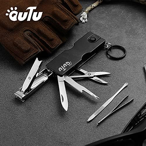 OUTU Keychain Nail Clippers Multitool, 8 in 1 EDC Utility Tool with Nail Clipper, Scissors, Tweezers, Gifts for Him Men Husband Dad Boyfriend (Black)